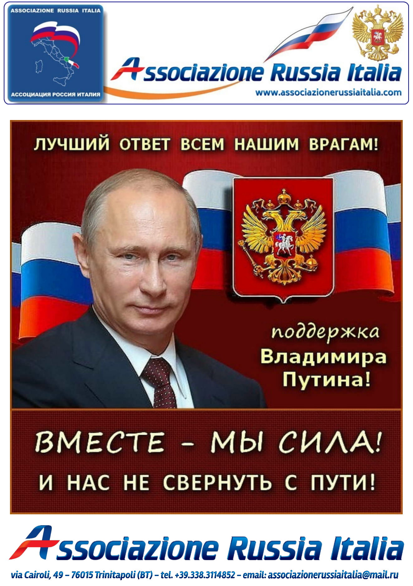 | via Cairoli, n. 49 - 76015 Trinitapoli (BT) - ITALIA telefono/whatsapp: +39.338.3114852 email: associazionerussiaitalia@mail.ru |