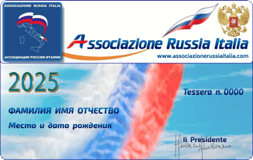 | Ассоциация Россия Италия является свободной и независимой ассоциацией, которая не получает никакого финансирования. Ваше вступление - очень важно для нас! Вашим взносом Вы поддерживаете наши события, и также удостоверяете Ваше участие, чтобы больше укреплять и развивать культурные, политические, экономические и торговые отношения между Италией и Российской Федерацией. |